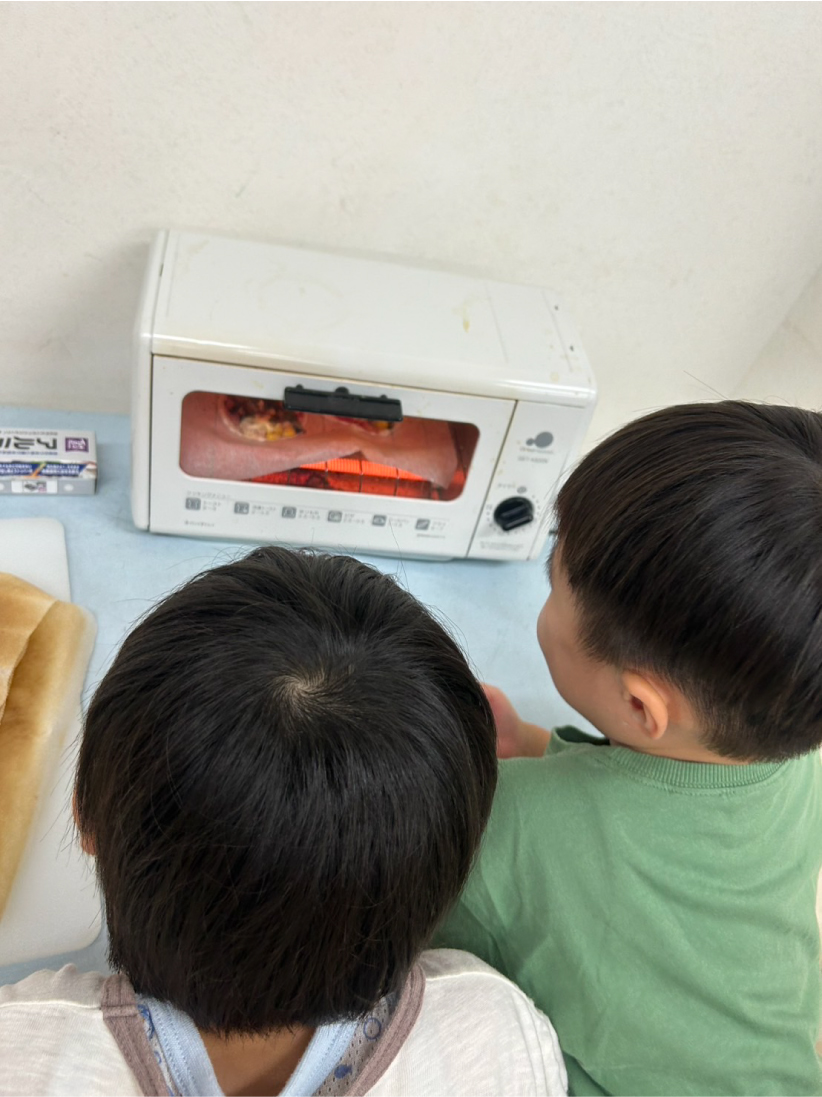 トースターに入れて、自分のピザが焼ける様子なども見てもらい、食べるのを楽しみにしていましたよ。