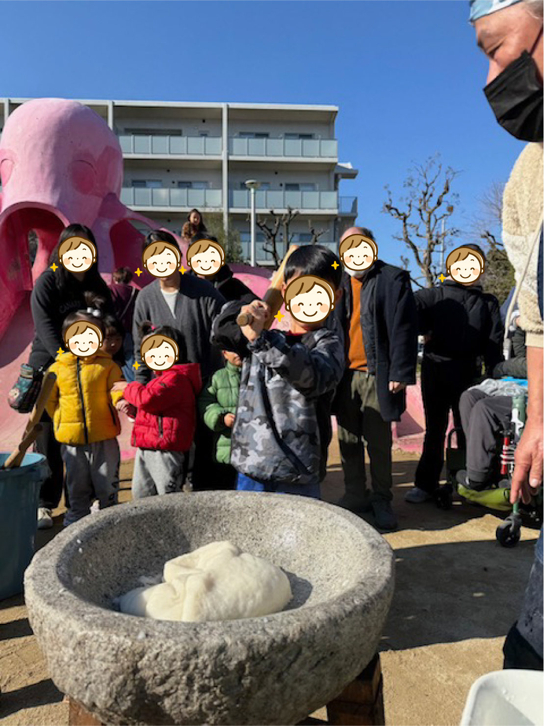 法界寺公園で行われたおもちつきに参加しました。